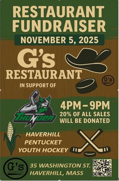 Join us for a GHPYH Fundraiser Night at G's Restaurant in downtown Haverhill.